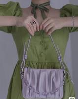 秀气的单扣肩包,包包公整的走线与温柔的马卡龙紫色系来了个视觉碰撞,适合干练外形的女孩背上。
