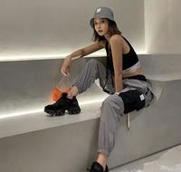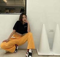 想要展露身材的女孩们可以穿宽松的短版上衣,里面穿sportbra,动作大也不用担心会走光啦~Bonnie在这套穿搭上也巧妙的利用「撞色」在裤子和鞋子上来点亮整体的穿搭,街头风格最重要的是遵守「上宽下宽」的穿搭原则就行了!