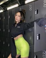只需要一件OversizedT-shirt搭配4分紧身裤的穿搭是最不会出错的,推荐给比较害羞的女孩。比起前阵子很夯的5分裤,略短一些的4分裤能够让腿露出来的面积更多,腿在视觉上也会看起来比较长!为了让整体穿搭更丰富,可以像Bonnie一样选择颜色比较突出的上衣。