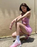 想要可爱的运动风穿搭就要从颜色下手啦!Bonnie为大家示范了全身粉色的运动套装,就连鞋子也是粉色的,搭配紫色的包包,营造出撞色的俏皮感,最适合可爱的懒女人XD