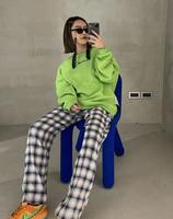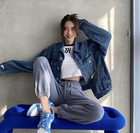 害怕不小心就穿出「睡衣感」的女孩,可以选择裤脚是束口设计的棉裤!或是可以像Bonnie那样,再套一件oversized牛仔外套增加时髦度哦。