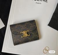 被誉为「女神美包」的 CELINETRIOMPHEBAG一直以来都备受女星们追捧,有着与生俱来的吸睛魔力。毋庸置疑,他们家的短夹也一样让人着迷不已!钱包上的经典老花纹搭配凯旋门金属浮雕锁扣,做工精细不已,更集复古与柔美气息于一身,想必是许多女孩梦寐以求的短夹之一。