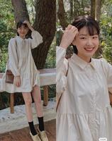 韩风穿搭1:简约长袖连身裙