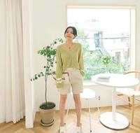 韩风穿搭8:V领长袖+高腰短裤