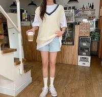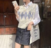 韩风穿搭5:针织背心+衬衫