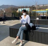 韩风穿搭6:素色上衣+深色牛仔裤