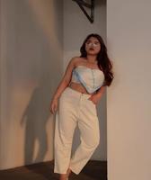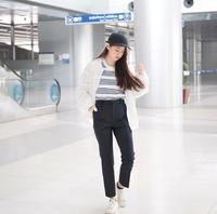 最明显的修饰,是从臀部的版型会稍微宽,延伸到小腿部分的时候裤子是直筒的版型,有效地遮住肉肉的臀部。这裤子适合小个子以及短腿女生,裤上的线条也能让你的腿显得更长哦~