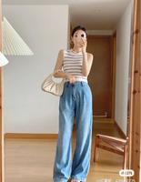 夏天日日都是30几度的天气,总是有想要穿无袖的时候,简约合身的条纹针织背心,无论是西装裤或牛仔裤都会很搭,宽裤的显瘦想必女孩们都能轻易驾驭