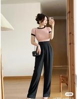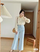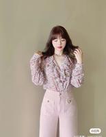 习惯在夏天室内冷气房穿长袖的女孩们,也南欧选择轻薄透气的款式,微V领雪纺木偶更好的修饰脸型,再搭同色系宽裤,办公室甜妹是你