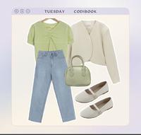 绿色是最能让人放松的颜色,胸口抓皱设计的上衣,也能为穿搭增添重点!
