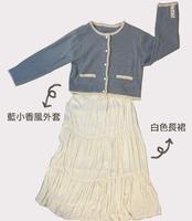 第一套我选了蓝色小香风的小外套,搭配白色充满仙气感的长裙,温暖柔软的面料及色彩,给人一种想恋爱的感觉,也显得非常有质感及高贵感!