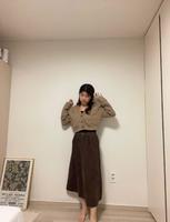 这一套以比较宽松的针织外套搭配同色系的棕色长裙,显现唯美慵懒的感觉,又非常有气质!