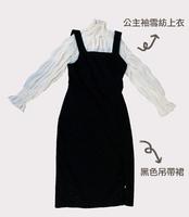 仙气奢华风(公主袖雪纺上衣+黑色吊带裙)