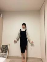 近年来逛韩国网拍都会看到的一组搭配,很适合在高级的餐厅或景点拍照,澎澎袖看起来增添不少优雅的感觉,雪纺的材质有点半透明,打造一种仙气质感,外面再搭配黑色吊带裙,吊带裙一直都是很受欢迎的单品之一,不一样的搭配会产生不同的效果,可以很俏皮,也可以很优雅性感