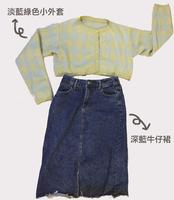 温柔复古风(淡蓝绿色小外套+深蓝牛仔裙)