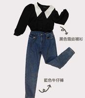 轻熟气质风(黑色雪纺衬衫+蓝色牛仔裤)