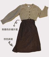 唯美慵懒风(焦糖色针织外套+棕色长裙)