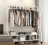 对於在外面租屋的学生来说,前面看到的开放式衣橱可能会有点小不够放,那这个开放式衣橱总共有两层,下面还有两个层架,不买鞋柜,也可以把下面的层架拿来放鞋子!(但还是要放在鞋盒里面比较卫生啦!)旁边也有附四个小挂钩,可以放下帽子、围巾、出门必背的包包!