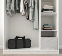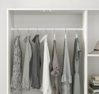 Ikea的外型就是走简约路线,实用!这样的三门衣柜,比较适合空间比较大的房间,这个衣橱打开来有一个吊杆,旁边有三个隔板让你收纳更好分类,如果觉得层板不够的话,IKEA也有另外卖的层板,让你可以自己创造属於自己的衣橱空间!