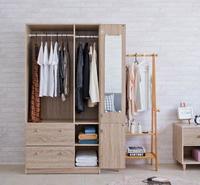 有附穿衣镜的衣柜,真的很省空间,又满足了大家穿衣服时,需要照镜子的心愿!里面是铝制的吊衣杆,所以当你要吊挂衣物的时候,不会因为承重力太强而变形,还有两个抽屉让你收纳更方便,旁边的开放吊杆也是这个衣橱的设计喔!让你可以挂还没有要洗的外出衣物!
