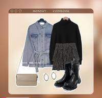 牛仔外套+高领看似平凡的搭配,就用黑色小碎花蛋糕裙带来浪漫,牛仔x雪纺碎花的冲突美感,超级实用的穿搭方法!