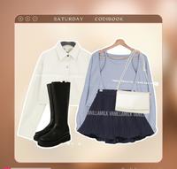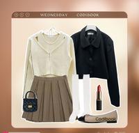 跟周三类似的搭配手法,但是因为版型上细百摺跟上衣小背心挖锁骨的设计,看起来更成熟小姊姊小恶魔的气场