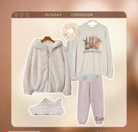 休闲穿搭用毛毛外套跟粉色增添甜美感吧~最后用大肠圈绑个马尾,居家约会也可以勾心的小魔法