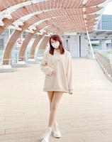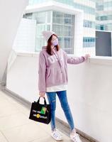 这件帽T我超喜欢,搭短裙、男友裤都很好看,比例很不错。我下半身肉肉比较多,搭紧身牛仔裤要用衬裙来遮屁屁和马鞍肉,好险今年流行这样穿,可以制造假两件的效果,也不错!搭球鞋、戴毛帽,再背可爱帆布包,让穿搭更活泼。