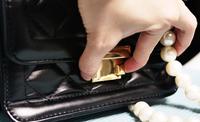 包包的金属开扣是简单好用的左右按压式设计,可以轻松优雅的打开包包,不怕拉链卡卡手忙脚乱。