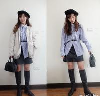 最后是这套,看日本女生**看到有人这样穿,想说条纹上衣红色外套我刚好也有~简简单单的