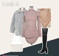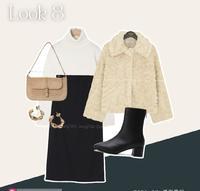 上班族女生必备的穿搭-高领上衣+长洋装,如果想直接穿这样去参加尾牙该怎么改造?加入吸睛度100%的卷卷毛外套试试看吧!比起一般的绒毛外套,卷卷毛创造出了立体感更好,能够将平淡的穿搭瞬间变高级,同理,不同颜色甚至是金线混纺的粗毛呢外套,也有同样的效果,但是要注意单品选择,不然可能会显得太成熟喔~
