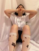 身为猫控没有一双猫咪袜子你说得过去吗!一看到就感觉到慵懒的自己,配上我这个来的正刚好的T-Shirt,没有什么比这还能表达我不想上班的心情了(嘘…老板不要看!)这双虽然是中筒,我搭配短裤反而能显示整体的比例,而且重点是它不勒肉,最怕穿有长度的袜子肉被挤出来了!