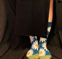 既然我都叫花花了,没有一双都是花的袜子那怎么行~通常这种大花色是最难驾驭的,一没控制好就会翻车,但没想到好搭的不得了,可以化身为气质乖乖女、爱读书女孩,但也可以换个方式搭配个性风变成古着感,甚至来个可爱风当然也没问题,可甜可盐就是在形容这双袜子吧