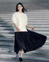 喜欢充满光泽感百褶裙的女孩们,一定要试看看这次的联名系列!这个百褶裙的材质使用容易保养的聚酯纤维缎面素材做成,配上非常细致的手风琴百褶设计,让裙子散发高级感!不对称的裙摆线条,走路时也能营造轻快感!松紧带的设计也让穿脱更方便!