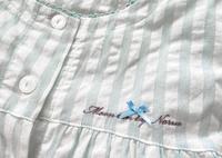 天空蓝条纹的布纹,微甜不腻的风格,很显气色又不会太过梦幻,