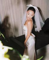 就在几天前ArianaGrande完婚,简约优雅的礼服出自於婚纱女王VeraWang之手。