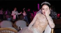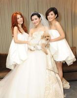 当年遭火吻的Selina,身着象牙色的华丽婚纱,展现公主气息。