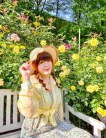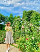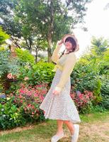 穿着@ciiao_tw透肤罩衫碎花洋装