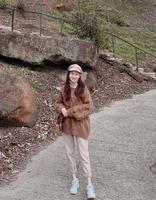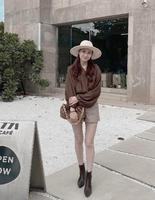 喜欢舒服的休闲风或运动风Lovfee也有喔!像这种单穿可能会很像睡裤的裤子,只要上身搭个造型感重一点的上衣就不会显得太居家,除了搭麻花毛衣我还选择了有造型感的报童帽,中和一下整体的休闲比例,也是个好选择喔!