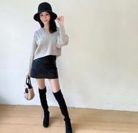 全身:#皮裙+毛呢渔夫帽+短版麻花毛衣+绒布#膝上靴,这套#异材质穿搭看起来很时髦,走在街头会成为众人焦点!