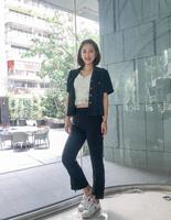 LOOK3.短版细肩上衣搭窄直筒西装裤,专业又不失时尚的打扮!