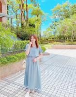 很美的灰蓝色洋装,牌子是来自日本的titivate,去年推出时就造成大抢购,今年推出新色灰蓝,又造成暴动啦~简单的剪裁万年不败:V字领口能修饰脸部线条、反摺袖口超可爱、腰部松紧+绑带能随自己的喜好系出腰身、大伞摆能修饰屁屁和腿部线条~版型超完美!