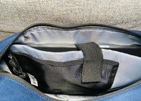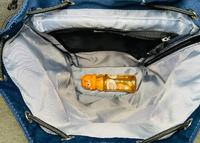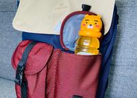 包包正面有两个口袋,使用安全插扣设计,这个口袋很深,可以放瓶装水、保温杯、折叠伞,超级方便。