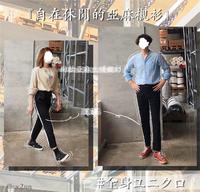 下半身搭配浅灰长裤,一甩上身的厚重感。