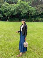 选一条9分长裙,不遮住靴子,露一点脚踝,整体看起来更显瘦,有没有�