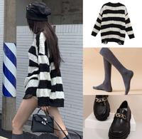 长版毛衣+长筒袜+乐福鞋