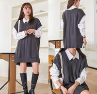 衬衫+长版毛衣背心+长靴