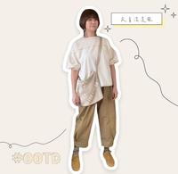 Nikoand…米色缝线上衣|军绿色哈伦裤|Nikoand…麻布侧背袋|GraceGift芥黄色休闲皮鞋