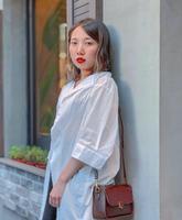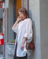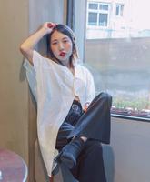 前短后长的罩衫,可以微露出腹部,质料穿起来亲肤舒适