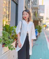 这次试穿夏日闲情 前短后长五分袖罩衫上衣和